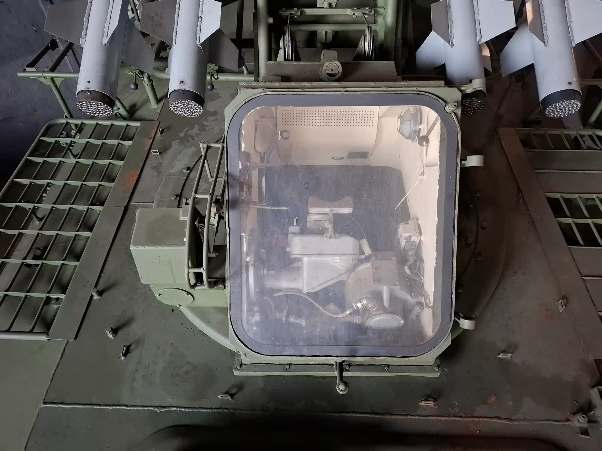 Der Strela 10 bekam einen um 360 Grad drehbaren Turm mit vier Lenkwaffen. Im Turm vorn ist in kleiner Kommandostand für den Richtschützen mit einem optischen Visier und der Radarbedienung.