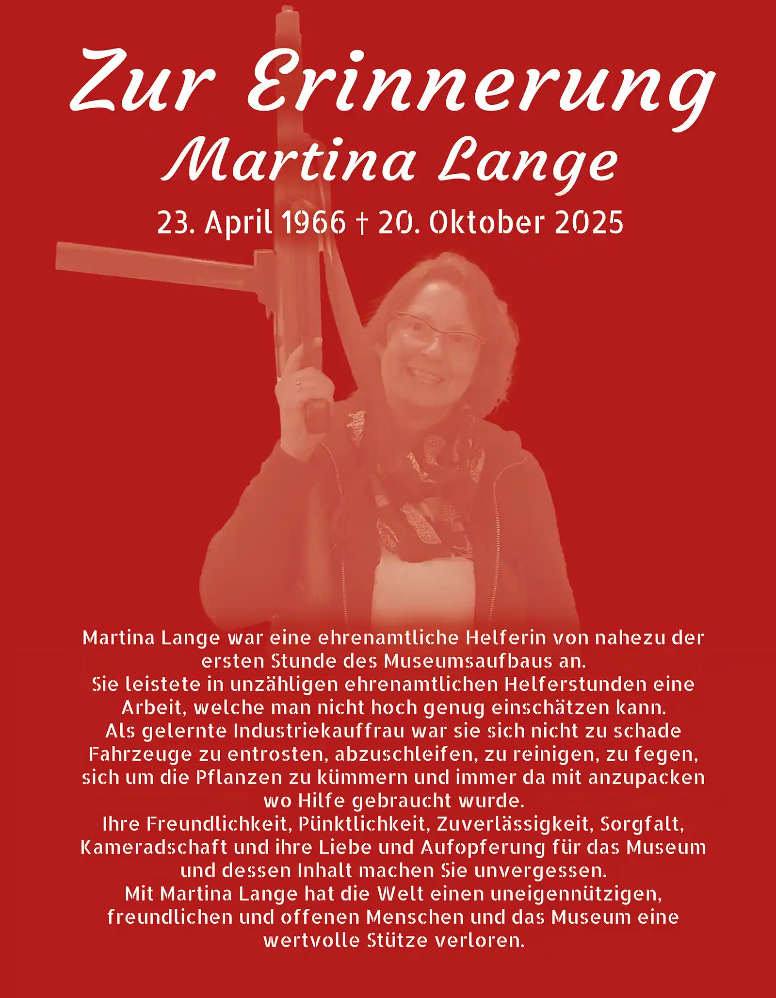 Martina Lange war eine ehrenamtliche Helferin von nahezu der ersten Stunde des Museumsaufbaus an.